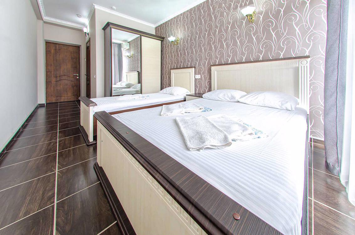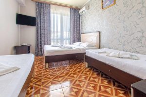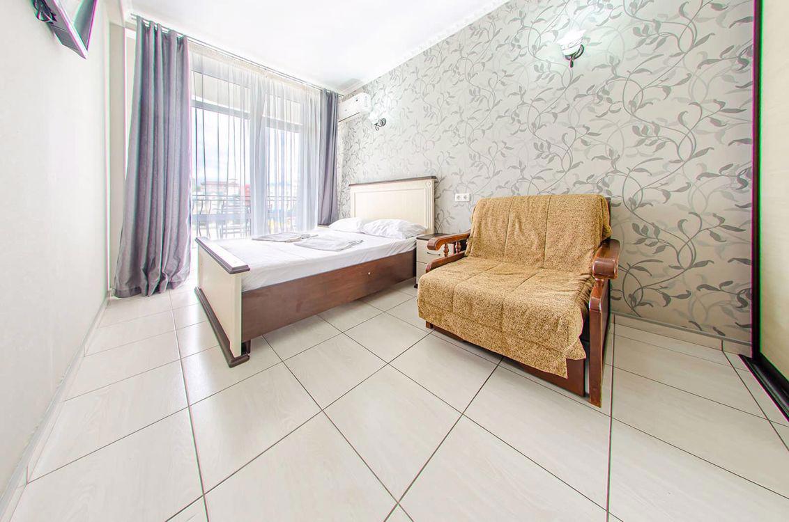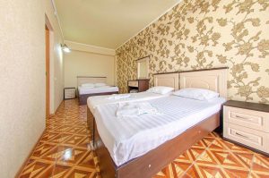 К услугам отдыхающих одно- и двухкомнатные номера для проживания 2-5 человек с возможностью организации дополнительных спальных мест. Во всех номерах предусмотрена система кондиционирования, собственный санузел, имеется стандартный набор бытовой техники (холодильник, ТВ, сплит-система), доступен беспроводной интернет. Номера могут быть с балконом и без. Балконы (при наличии) меблированы.