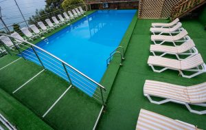 Зона оборудована следующими элементами: удобные переходы и лестницы, уютные места для отдыха, открытый бассейн с пресной водой.