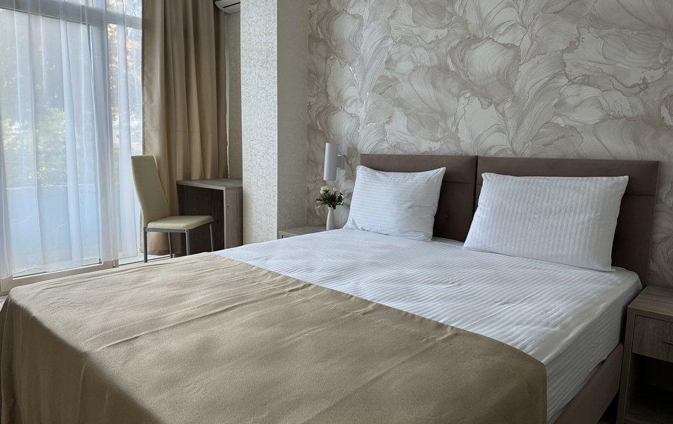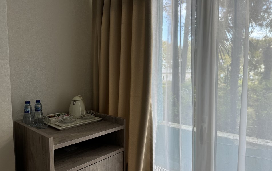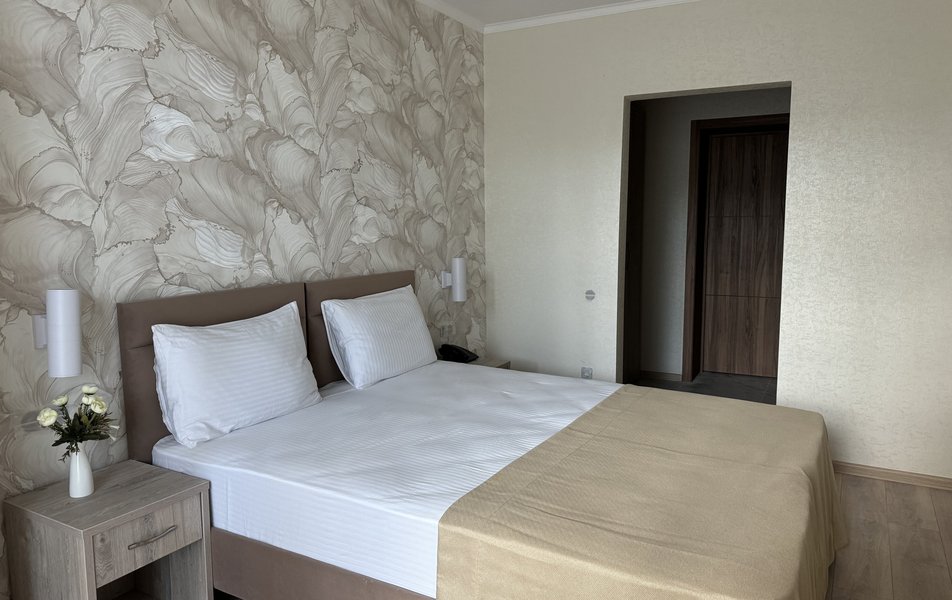 Проживание: Для размещения гостей доступны 2-местные номера категорий Эконом, Стандарт, Супериор, Улучшенный, а также Семейные 4-местные номера. Все номера оборудованы индивидуальным санузлом с душем, холодильником, телевизором, кондиционером. Некоторые номера имеют балконы.