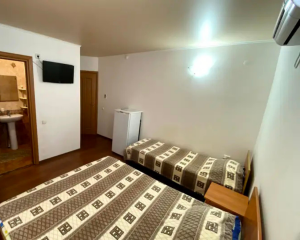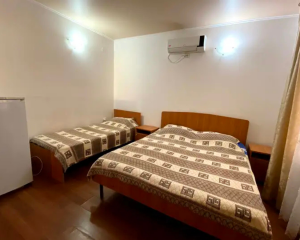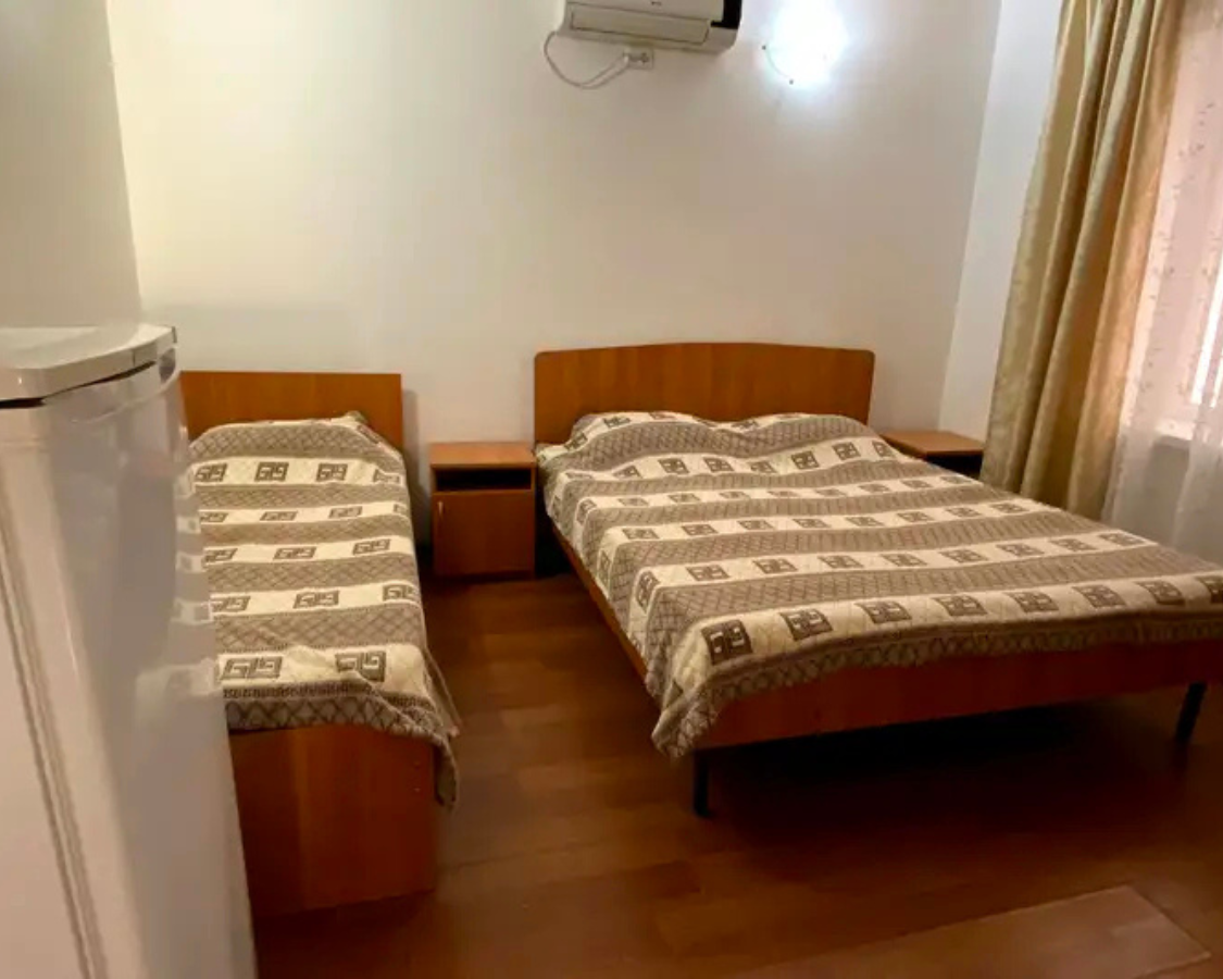 Гостевой дом представляет собой трехэтажное здание с 2-х 3-х, 4-х местными номерами со всеми удобствами. В каждом номере есть вся необходимая мебель, кондиционер, телевизор, холодильник, сан. узел с душем.